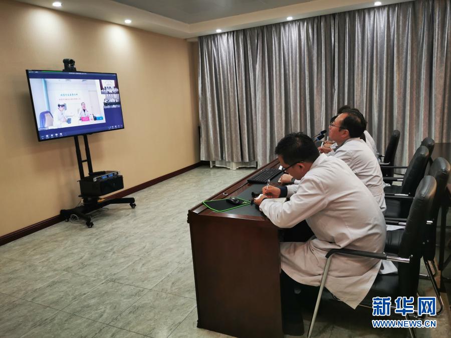 2019年10月25日,黑龍江省海倫市人民醫院醫生通過遠程技術與外地專家一同進行會診(手機照片)。新華社發