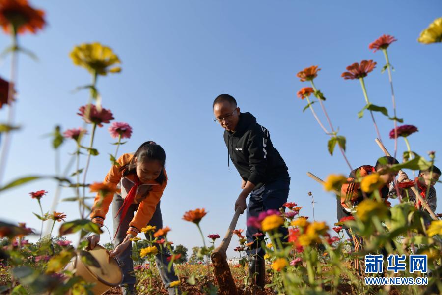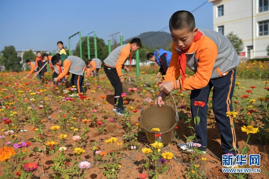 江西省宜春市袁州區寨下中心小學學生在花田勞動(11月9日攝)。新華社記者 彭昭之 攝