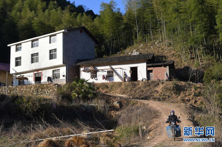 在江西省萬載縣高村鎮新竹村,新竹小學的校長羅長石為學生郭仕錢送完課程之后繼續趕路,去下一家送課(2月17日攝)。新華社記者 彭昭之 攝