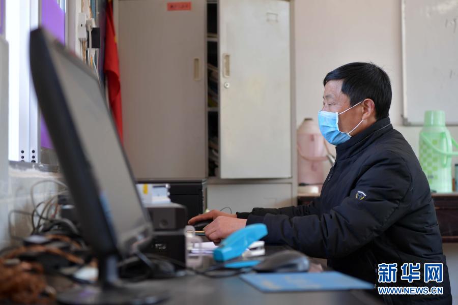 在江西省萬載縣高村鎮新竹村新竹小學,校長羅長石邊播邊錄當天的線上教育課程(2月17日攝)。新華社記者 彭昭之 攝