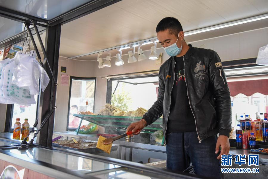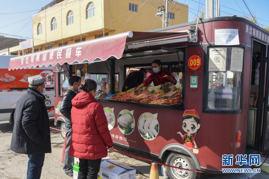 新華社烏魯木齊11月20日電(記者張鐘凱、丁磊)午飯時間,在新疆和田地區墨玉縣扎瓦鎮客運站旁,一輛棗紅色餐車飄出陣陣肉香??倦u柳、炸雞脖、炸雞排……琳瑯滿目的美食吸引了不少食客。