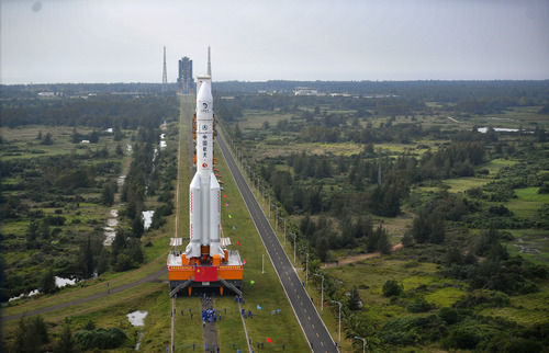 這是11月17日在中國文昌航天發射場拍攝的長征五號遙五運載火箭。新華社記者 郭程 攝