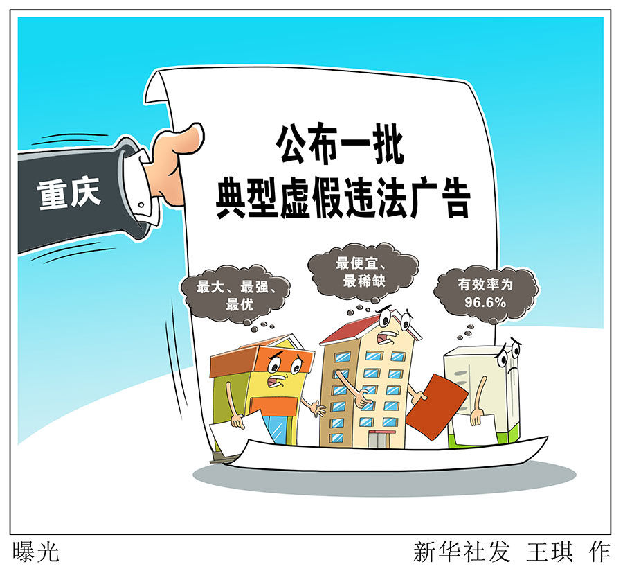 新華社重慶11月24日電(記者周凱)記者從重慶市市場監督管理局獲悉,為凈化廣告市場環境、宣傳廣告法律法規知識,重慶市市場監督管理局從今年查辦的虛假違法廣告案件中選出十個典型案例向社會公布。