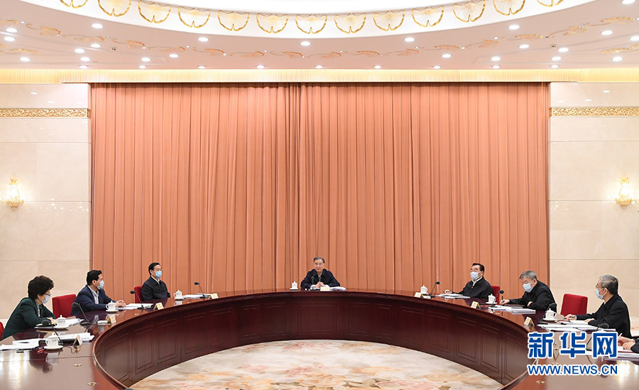 11月25日,全國政協黨組在北京召開會議,專題學習貫徹習近平法治思想和中央全面依法治國工作會議精神。中共中央政治局常委、全國政協主席、黨組書記汪洋主持會議并講話。 新華社記者 申宏 攝