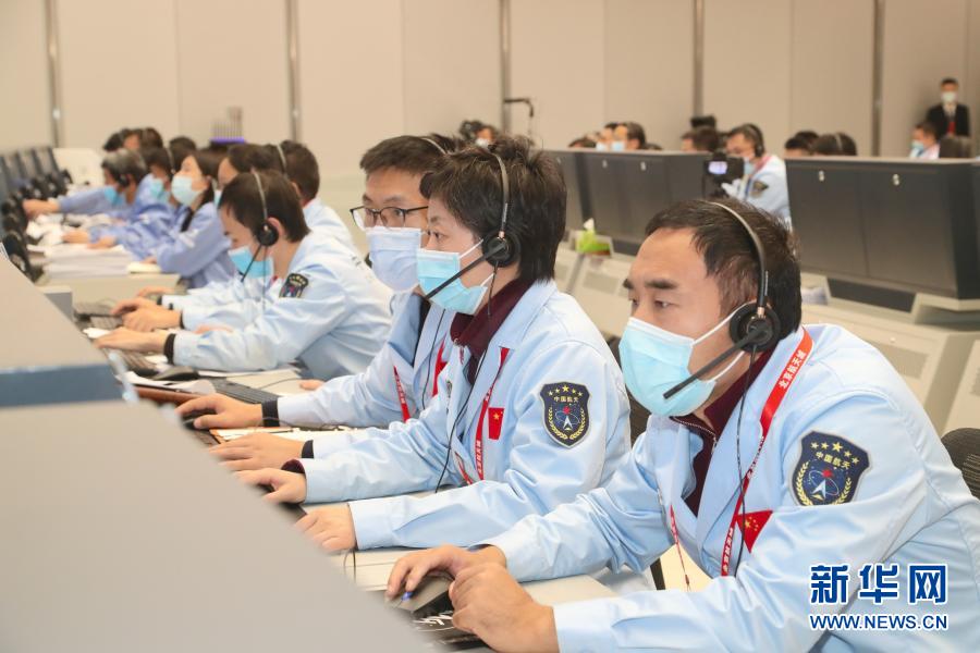 11月29日,航天科技人員在北京飛行控制中心工作。新華社發(北京航天飛行控制中心供圖)