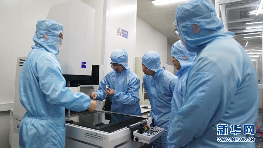 在中科院長春光機所,科研人員隋延林(中)和同事們探討科研方案(11月25日攝)。新華社發(王帆 攝)