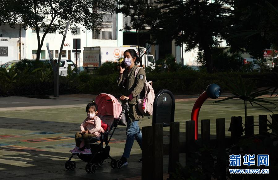 12月3日,在香港觀塘海濱花園,市民戴口罩出行。新華社記者 李鋼 攝