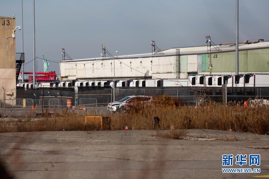 12月3日,在美國(guó)紐約,存放新冠病亡者尸體的冷藏車停放在一處臨時(shí)停尸場(chǎng)內(nèi)。新華社發(fā)(郭克 攝)