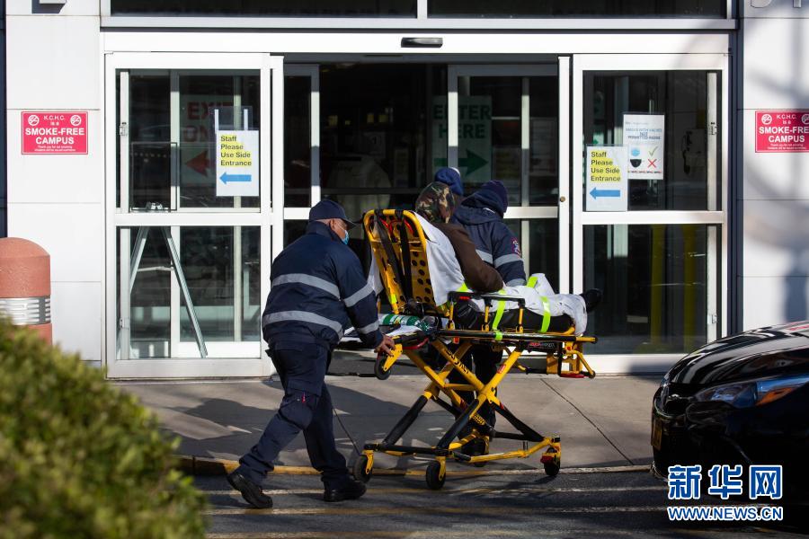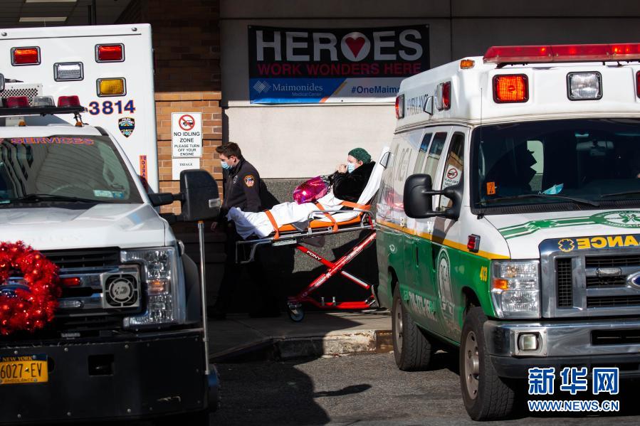 12月3日,在美國(guó)紐約,工作人員運(yùn)送一名患者。新華社發(fā)(郭克 攝)