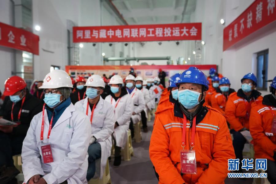 12月4日拍攝的西藏阿里與藏中電網聯網工程投運大會霍爾220千伏變電站分會場。新華社記者 詹彥 攝