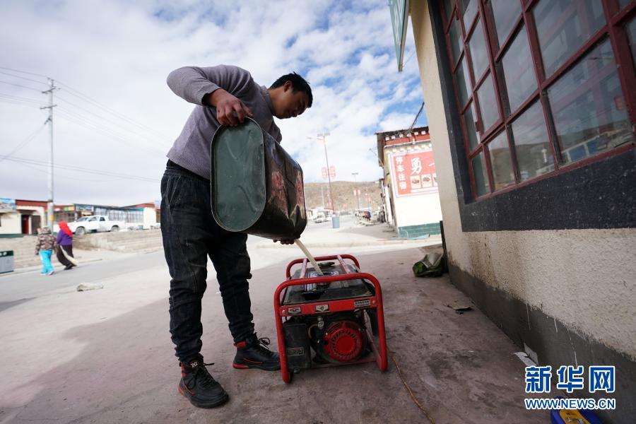 在西藏阿里地區普蘭縣巴嘎鄉崗莎村,一家飯店的工作人員準備用發電機發電(11月29日攝)。新華社記者 詹彥 攝