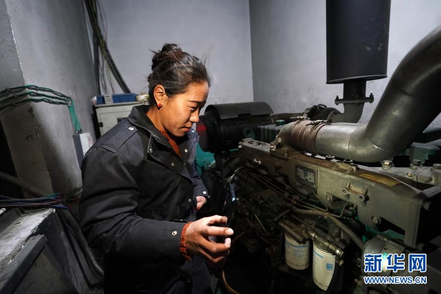 在西藏日喀則市薩嘎縣西部驛站大酒店,工作人員查看發電機運行情況(11月27日攝)。新華社記者 詹彥 攝