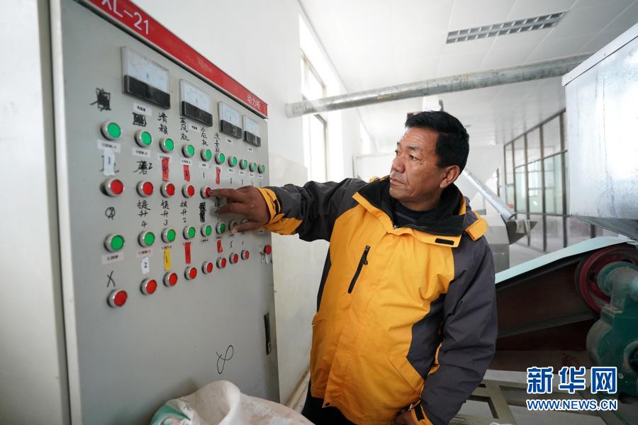 在西藏阿里地區普蘭縣普蘭西德稞原地食品有限公司,工作人員在糌粑加工車間查看設備運行情況(11月28日攝)。新華社記者 詹彥 攝