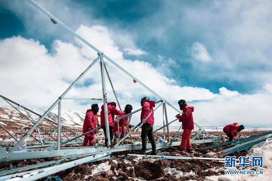 “施工人員服用保護心臟的藥,背著氧氣瓶上到山頂,工作時心跳一直保持在每分鐘120次以上,一個小時就得輪班下來?!弊T晉說,山頂的天氣變幻無常,有時晴朗,強烈的紫外線照得大家滿臉水泡;有時一場大雪,有的工人會瞬間雪盲。