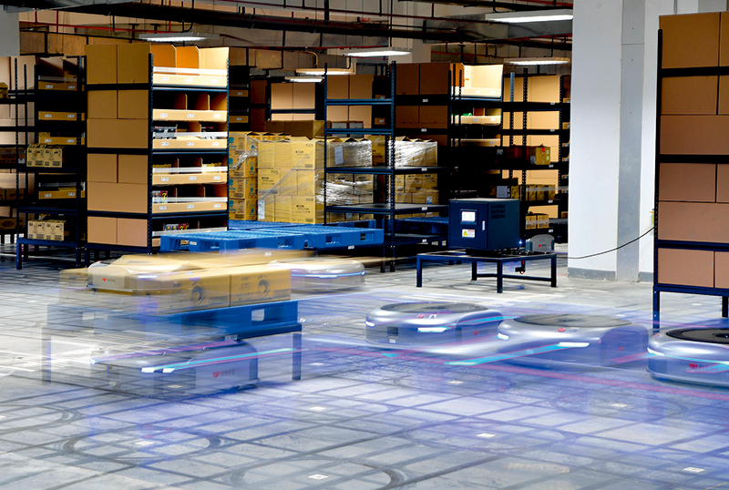河南保稅物流中心,分揀機器人進行包裹分揀工作(2019年1月14日攝) 李嘉南攝