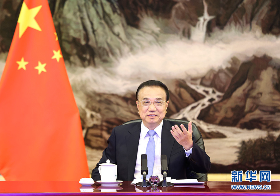 12月8日,國務(wù)院總理李克強(qiáng)在北京人民大會堂視頻會見國際貨幣基金組織總裁格奧爾基耶娃。 新華社記者 龐興雷 攝