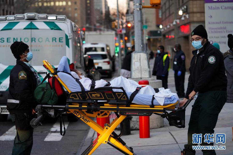 12月8日,醫護人員在美國紐約一家醫院外運送病人。美國約翰斯·霍普金斯大學8日發布的新冠疫情最新統計數據顯示,美國累計確診病例超過1500萬例。新華社記者 王迎 攝