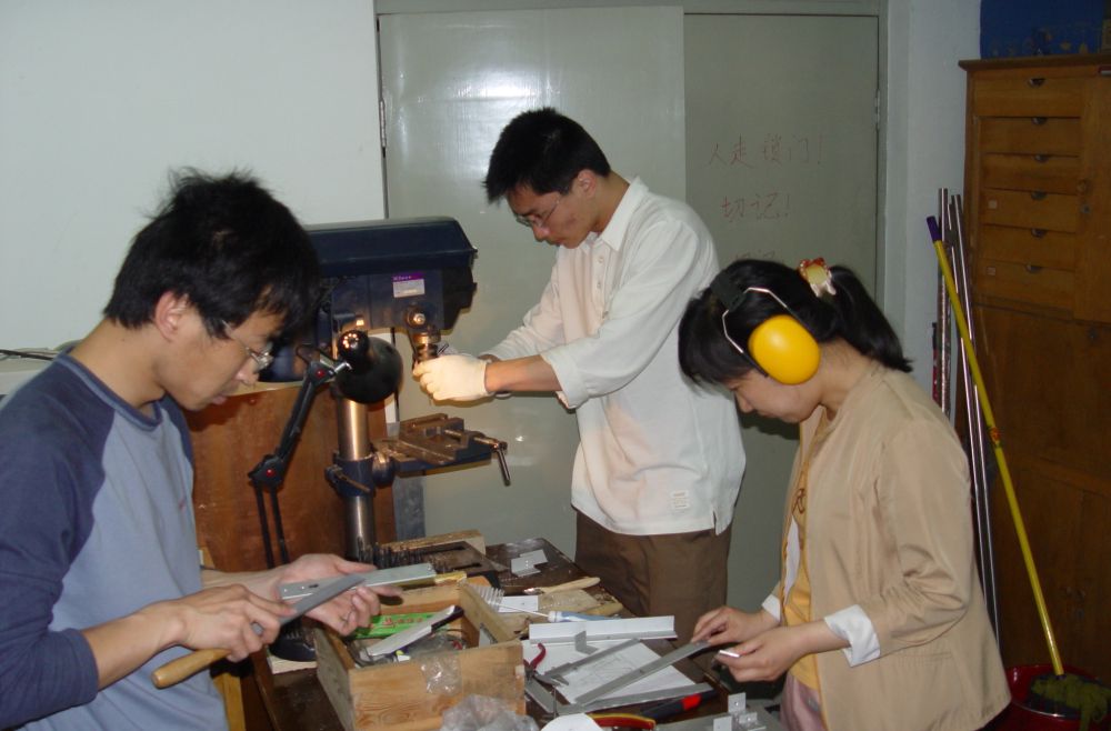 ↑甘恒謙(左一)和同事一起在做接收機的盒子(由受訪者提供)