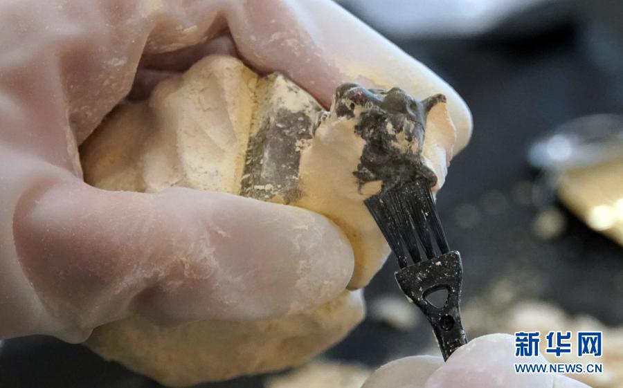 工作人員演示“考古盲盒”的開盒過程(12月8日攝)。新華社記者 袁月明 攝