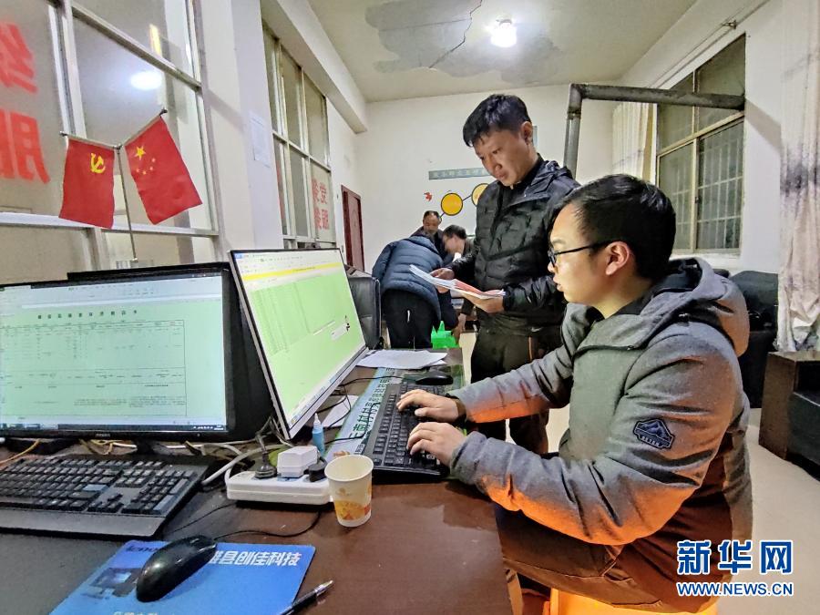 11月11日晚,云南省鎮雄縣以古鎮巖洞腳村駐村扶貧隊員在村委會工作。新華社記者 林碧鋒 攝
