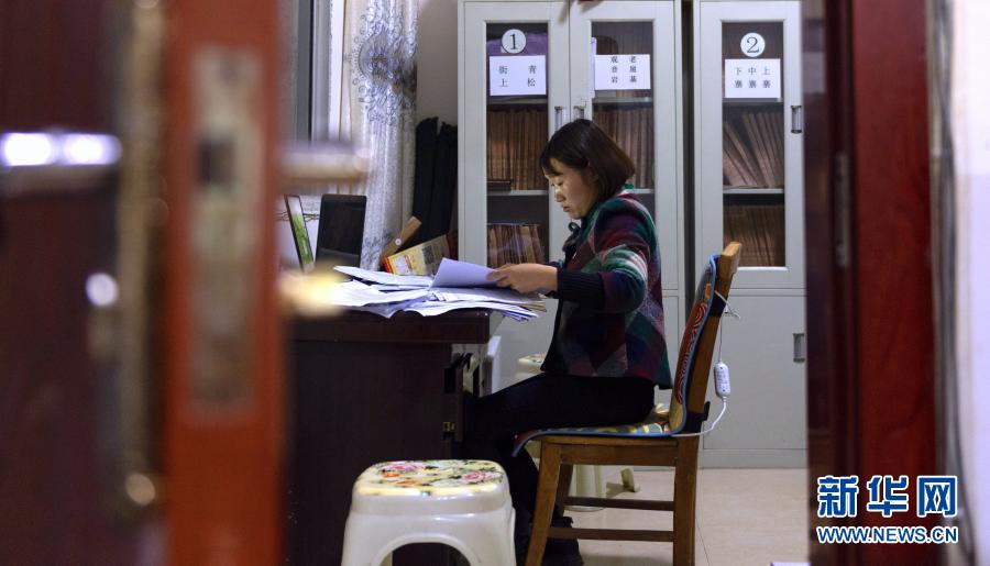 11月11日晚,云南省鎮雄縣以古鎮巖洞腳村駐村第一書記郭登會在村委會工作。新華社記者 王冠森 攝