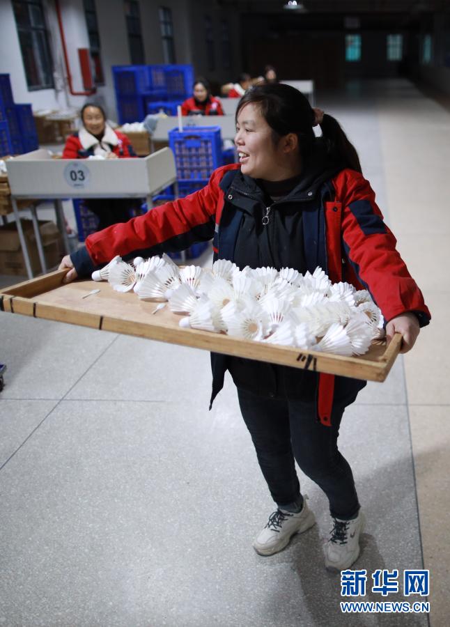 工人在位于貴州省錦屏縣敦寨鎮的貴州亞獅龍體育文化產業發展有限公司羽毛球加工廠工作(12月8日攝)。新華社記者 劉續 攝