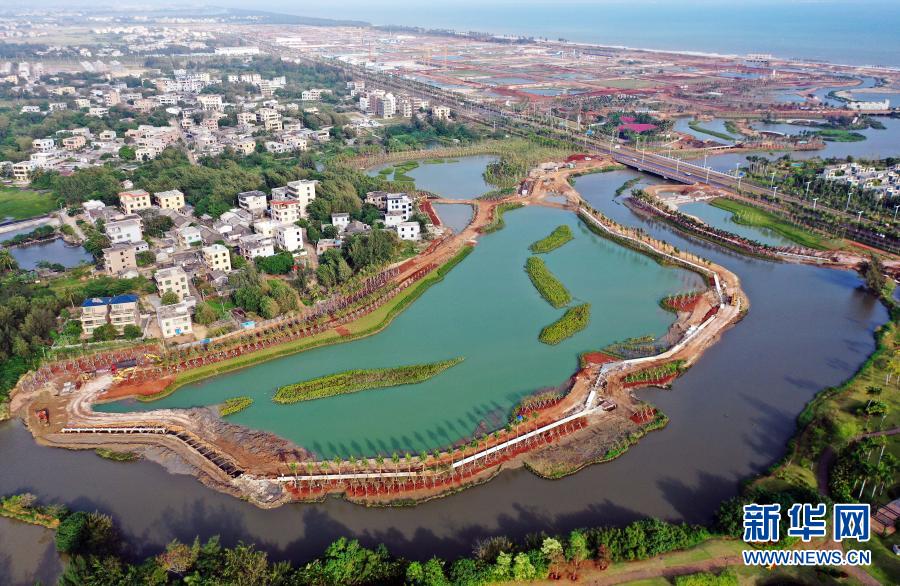 這是海口市江東新區芙蓉河綜合治理工程(11月6日攝,無人機照片)。新華社記者 郭程 攝