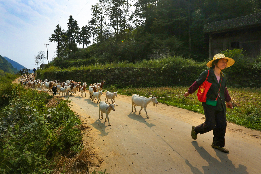 ????2016年12月, 湖南省常德市桃源縣楊溪橋鎮煌山村貧困戶孔文斌享受黨的扶貧好政策,用貸款購買了十多只羊,發展家庭養殖業。周桂成 攝