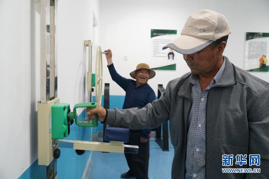 8月13日,在西寧市湟中區(qū)多巴鎮(zhèn)黑嘴村老年之家里,老人們在健身室內(nèi)鍛煉身體。新華社記者 張子琪 攝