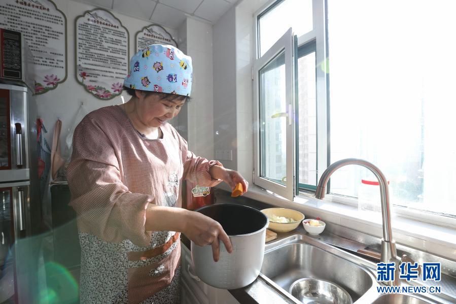 10月22日,西寧市城西區(qū)溫馨陽光托老所內(nèi),護理員張蓉霞在為老人們做飯。新華社記者 吳剛 攝