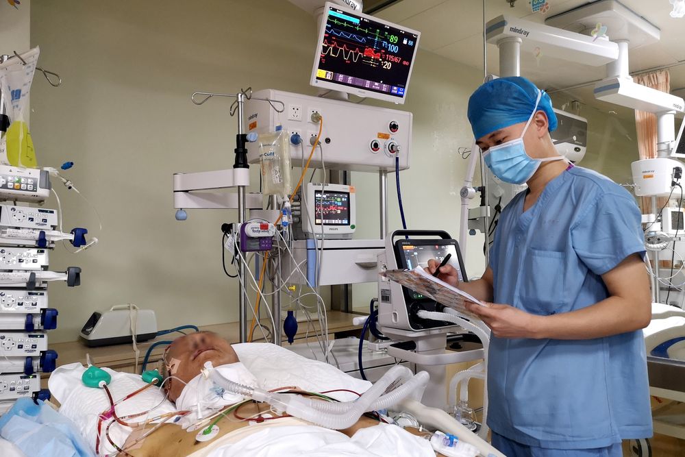 12月18日,青島大學醫學院研究生蘇柯帆在醫院里實習。