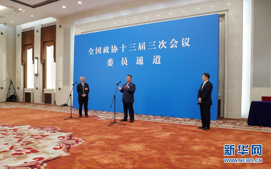全國政協十三屆三次會議首場“委員通道”采訪活動于5月21日在人民大會堂新聞發布廳舉行,邀請部分全國政協委員通過網絡視頻方式接受媒體采訪。圖為“委員通道”現場。新華網 王翰林 攝