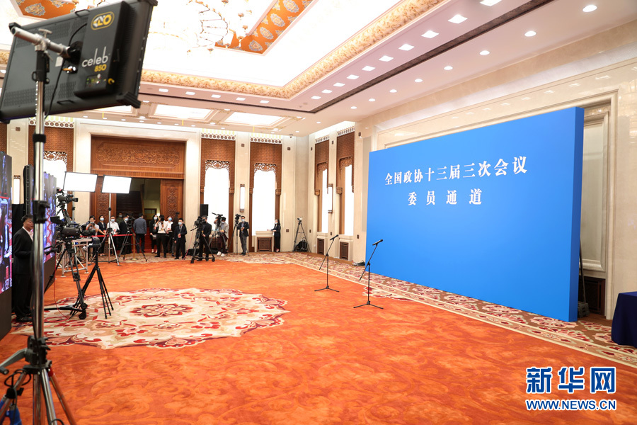 ??? 全國政協十三屆三次會議首場“委員通道”采訪活動于5月21日在人民大會堂新聞發布廳舉行,邀請部分全國政協委員通過網絡視頻方式接受媒體采訪。圖為