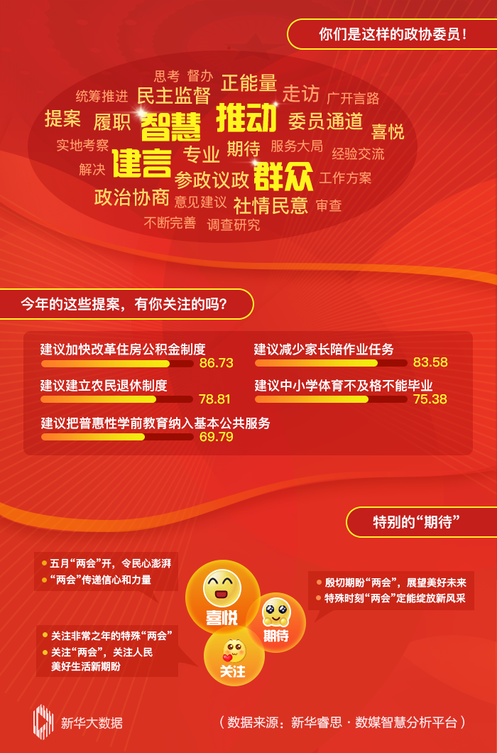 今年的提案,哪些“戳”中你的心?本周,隨著全國政協十三屆三次會議開幕時間的臨近,全國政協委員的提案持續引發輿論關注。其中,“加快改革住房公積金制度”“減少家長陪作業任務”等提案的討論熱度較高。網民說,委員的提案切實讓人民大眾感受到“兩會溫暖”。