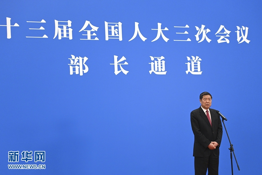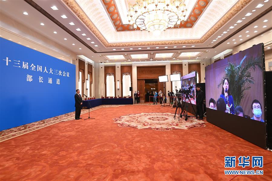 5月22日,第十三屆全國(guó)人民代表大會(huì)第三次會(huì)議舉行首場(chǎng)“部長(zhǎng)通道”采訪活動(dòng)。這是國(guó)家發(fā)展和改革委員會(huì)主任何立峰通過網(wǎng)絡(luò)視頻方式接受采訪。 新華社記者 陳曄華 攝
