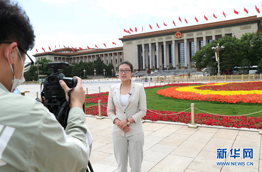 ??? 5月25日下午,第十三屆全國人民代表大會第三次會議在人民大會堂舉行第二次全體會議。新華網進行現場直播。圖為廣場上的媒體記者。新華網 翟子赫 攝