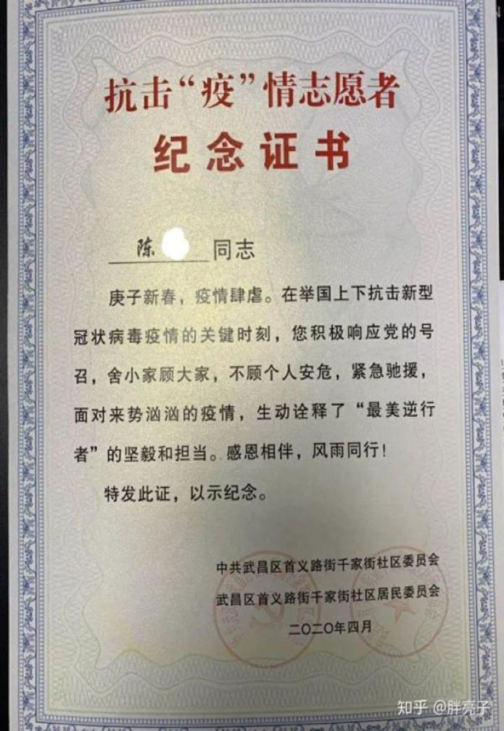 在武漢,網(wǎng)友“胖亮子”說,2月底,他的妻子接到下沉社區(qū)做志愿者的通知,可以自愿選擇,但她很快答應(yīng)了?!捌綍r有點(diǎn)潔癖而且膽小的老婆在這個時候能夠挺身而出,讓我刮目相看。”