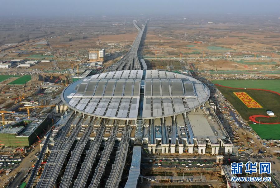 這是2020年12月23日拍攝的京雄城際鐵路雄安站(無人機照片)。12月27日,北京至雄安新區城際鐵路大興機場至雄安新區段開通運營,京雄城際鐵路實現全線貫通,雄安站同步投入使用。