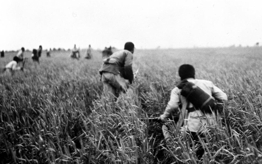 八路軍戰(zhàn)士在冀中的麥田里進行伏擊戰(zhàn) 新華社圖片