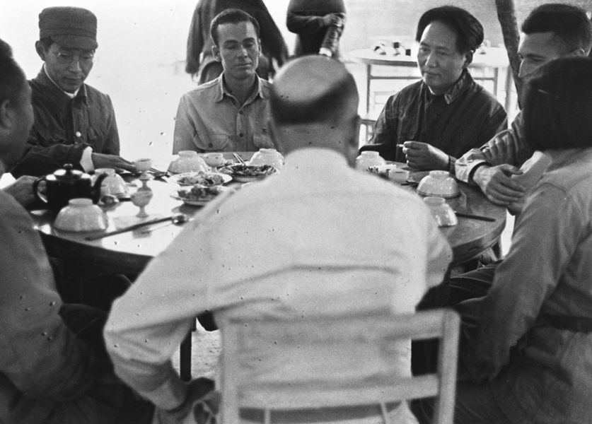 1944年6月,毛澤東設(shè)宴招待中外記者西北參觀團。 新華社圖片