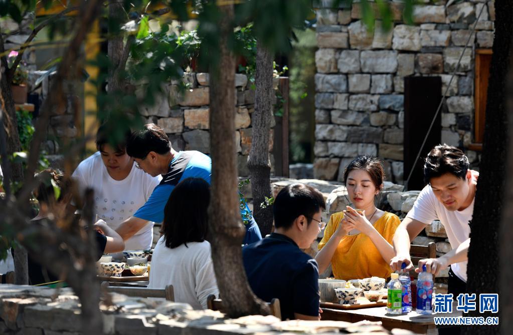 游人在天津市薊州區西井峪村一座農家院內休憩(2020年8月21日攝)。新華社記者 李然 攝