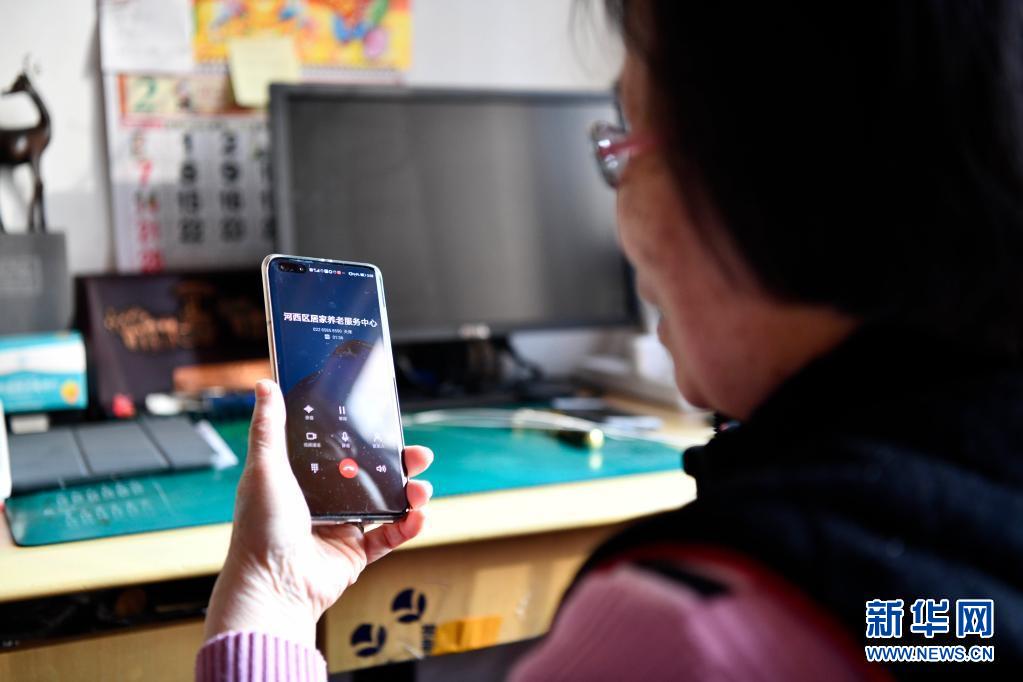 家住天津市河西區桃園街道的獨居老人在體驗居家養老服務的智能外呼系統(2月9日攝)。新華社記者 趙子碩 攝