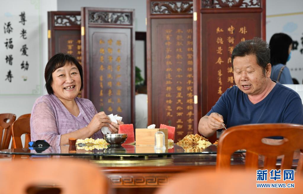 2020年7月7日,老人在付村康養中心(老人家食堂)準備用餐。新華社記者李然 攝