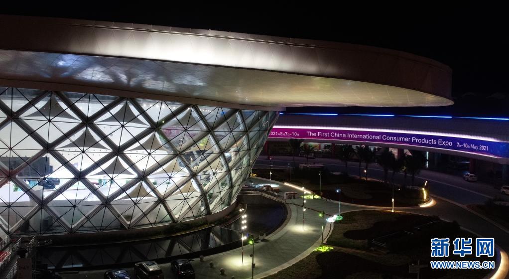這是2021年5月4日拍攝的首屆消博會舉辦地海南國際會展中心(無人機照片)。新華社記者 楊冠宇 攝