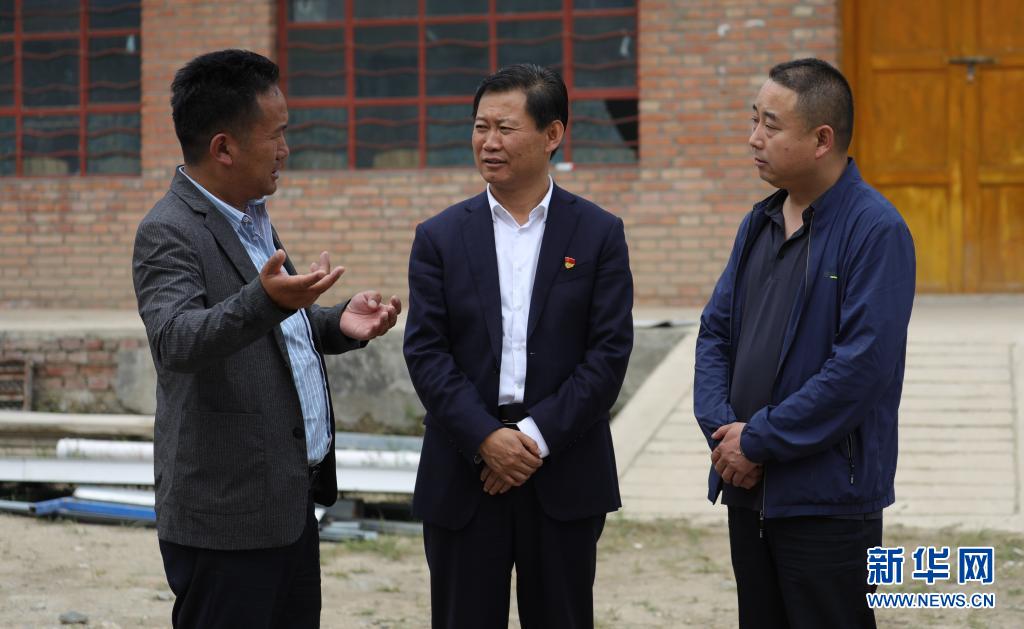 7月6日,張峰(中)在青海省海南藏族自治州共和縣恰卜恰鎮索吉亥村調研。新華社記者 央秀達珍 攝
