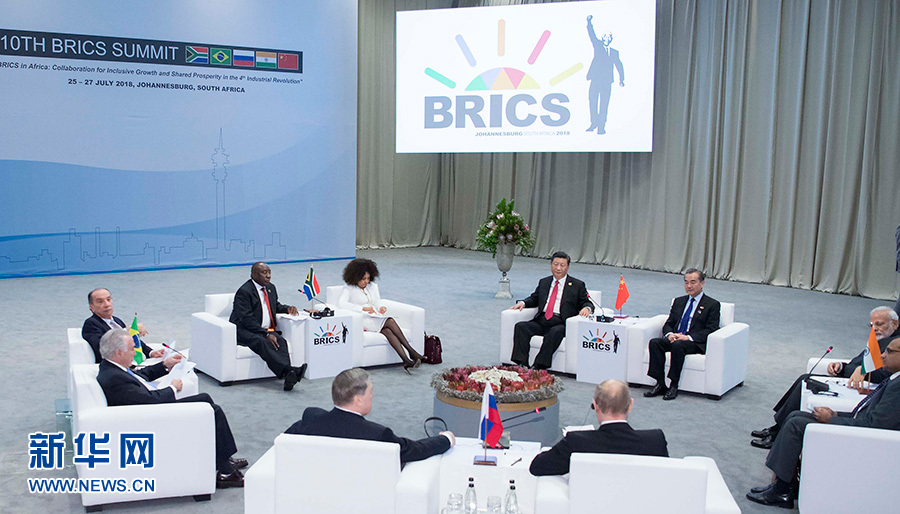 7月27日,紀(jì)念金磚國(guó)家領(lǐng)導(dǎo)人會(huì)晤10周年非正式會(huì)議在南非約翰內(nèi)斯堡舉行。中國(guó)國(guó)家主席習(xí)近平、南非總統(tǒng)拉馬福薩、巴西總統(tǒng)特梅爾、俄羅斯總統(tǒng)普京、印度總理莫迪出席。 新華社記者 李濤 攝