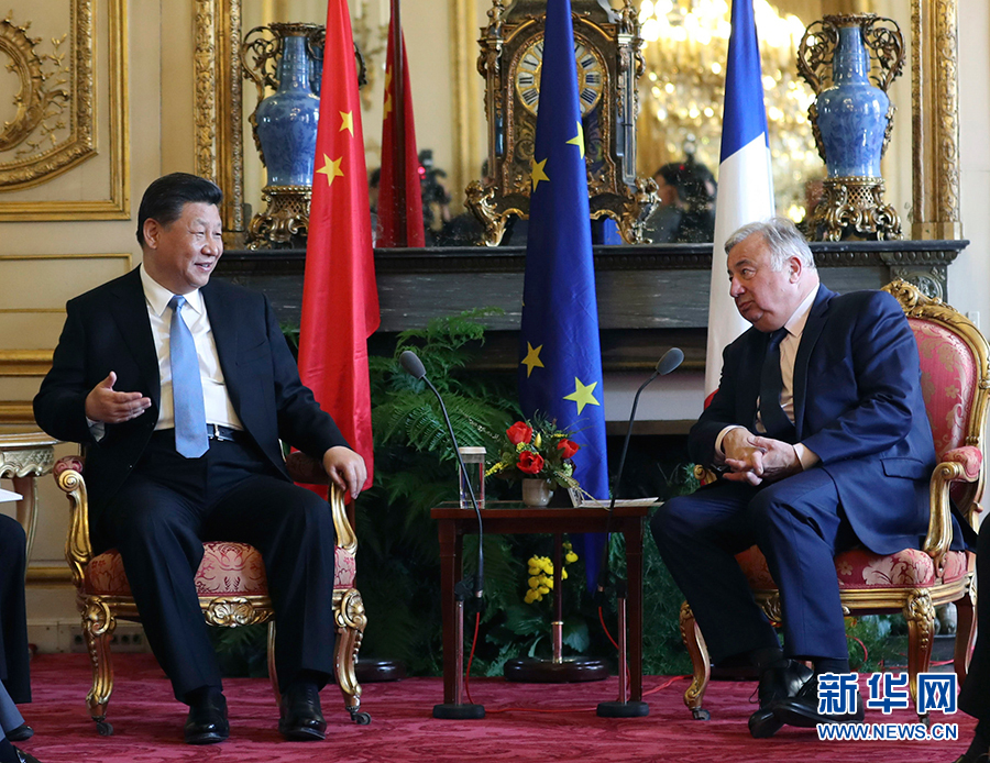 3月26日,國家主席習近平在巴黎會見法國參議長拉爾歇。 新華社記者丁海濤攝