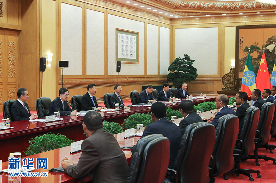 習近平強調,埃塞俄比亞是中國在非洲的重要合作伙伴。中埃都是發(fā)展中大國,都依靠自身努力走出一條符合本國國情的發(fā)展道路。中方支持埃方維護穩(wěn)定、發(fā)展經(jīng)濟、改善民生的努力,愿同埃方保持高層交往勢頭,在涉及彼此核心利益和重大關切問題上繼續(xù)相互理解和支持;推進雙邊互利合作,幫助埃方提升工業(yè)化水平和出口創(chuàng)匯能力;密切在氣候變化、非洲之角形勢等國際和地區(qū)事務中溝通協(xié)調。中方愿以共建“一帶一路”和落實中非合作論壇北京峰會成果為契機,深化兩國全面戰(zhàn)略合作伙伴關系,更好造福兩國人民。
