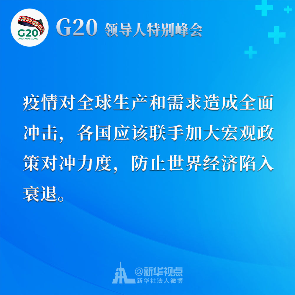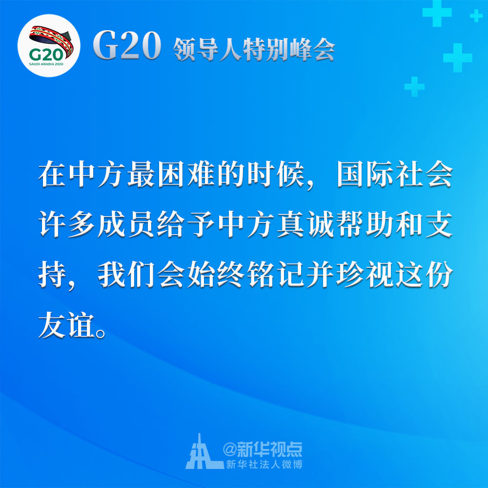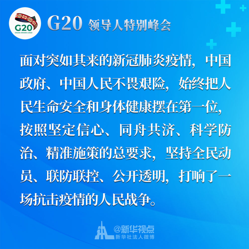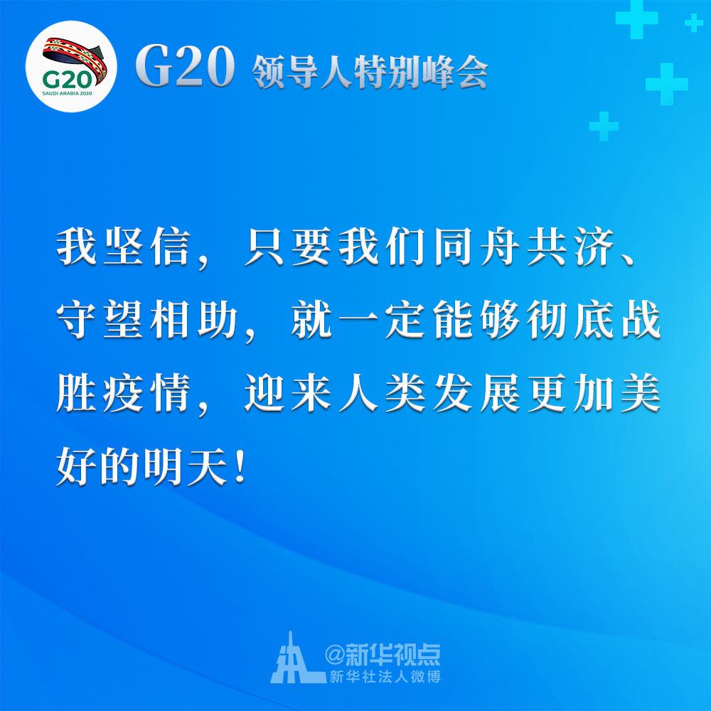習(xí)近平在二十國(guó)集團(tuán)領(lǐng)導(dǎo)人應(yīng)對(duì)新冠肺炎特別峰會(huì)上重要講話金句↓