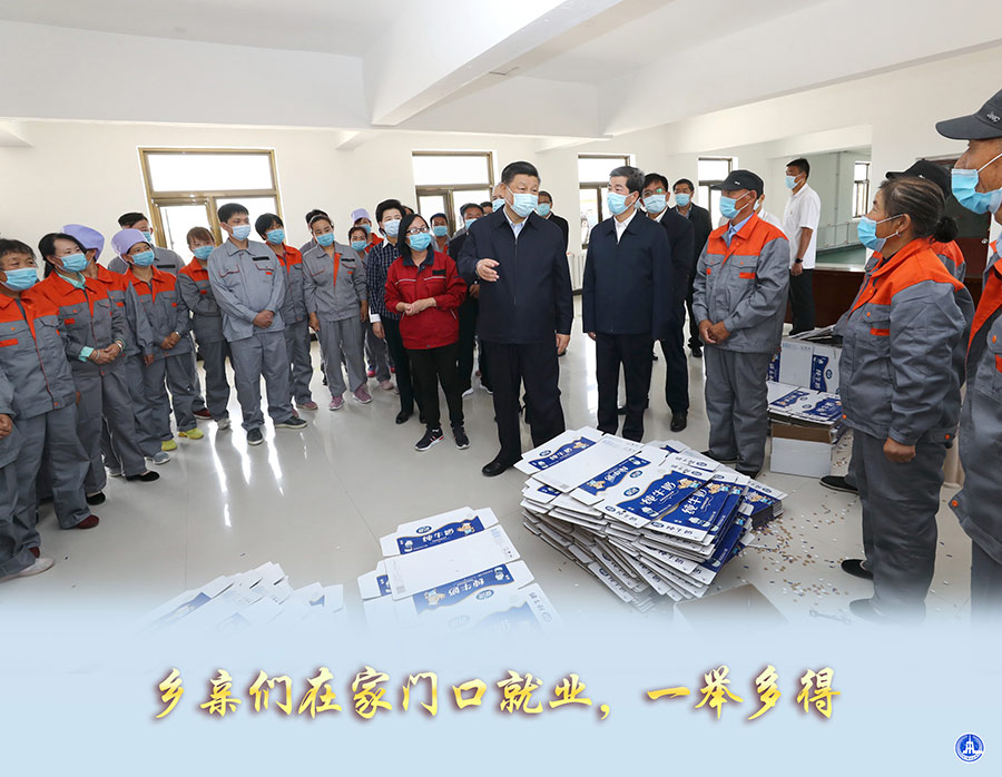 在村里,習近平總書記特地考察了扶貧車間:“不是搬過來蓋幾間漂亮房子就行了。鄉親們搬出來后,要穩得住、能致富,才能扎下根。”